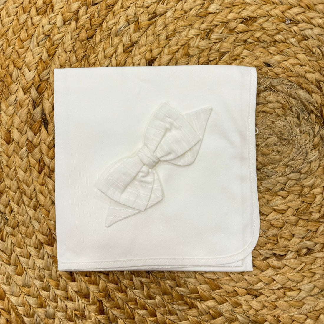 Quadrato in puro cotone con fiocco in sangallo 67x67cm