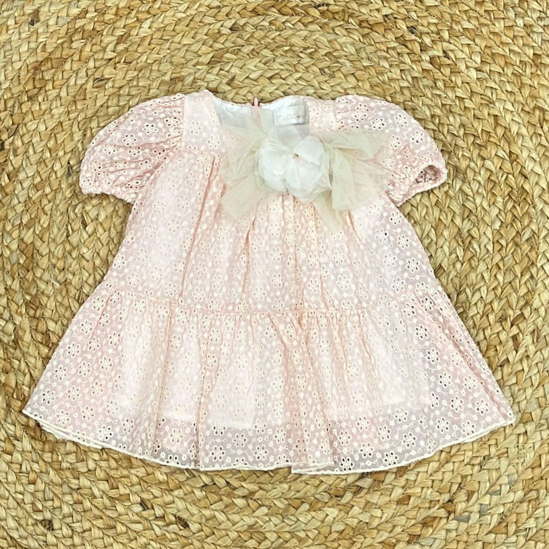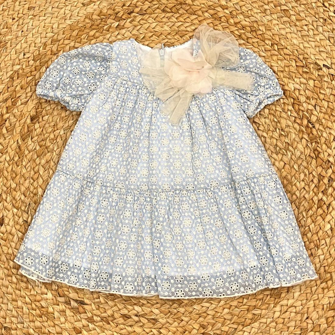 Abito cerimoniale con balza ricamata e fiocco in toulle sul retro