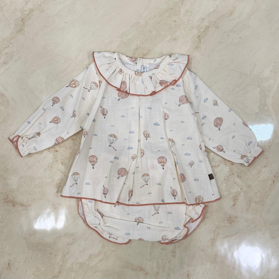 blusa con collo rouches e coulotte in coordinatofantasia mongolfierecodice: 22093
