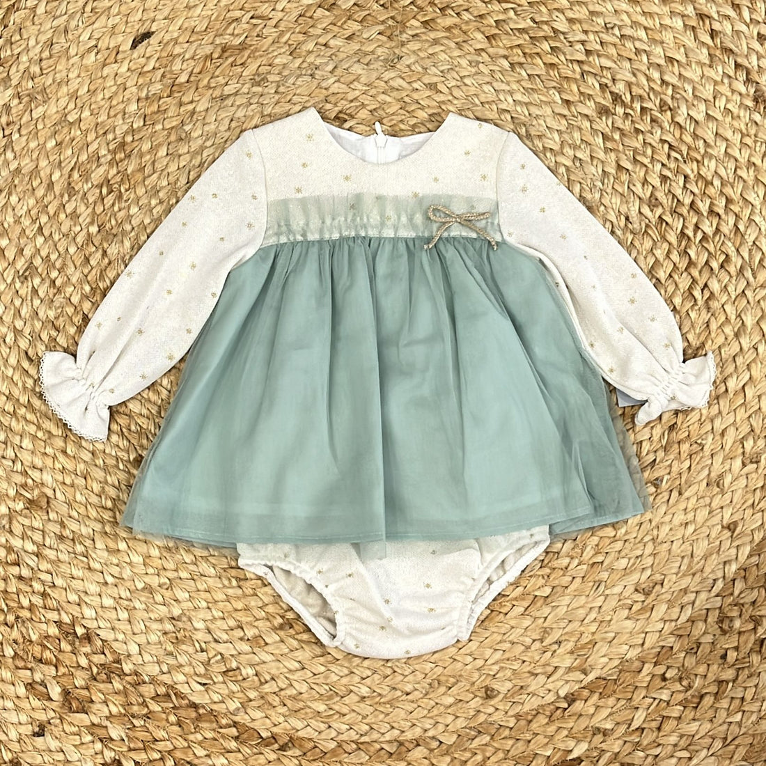 Blusa,copripannolino e cuffietta con inserti in sangallo