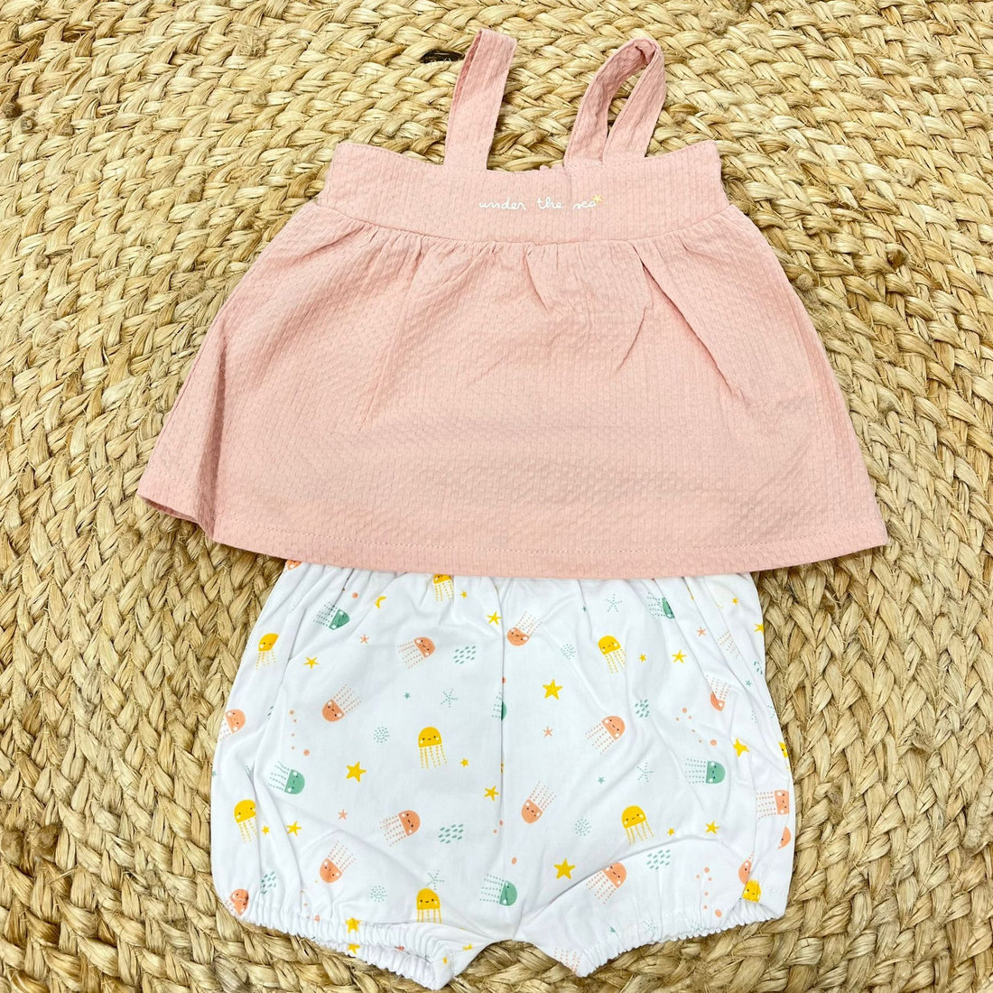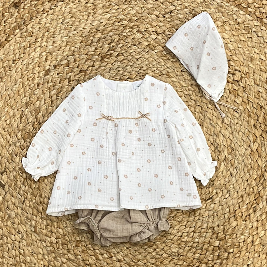 Micolino Blusa con Coulotte e Cuffia Fiorellini