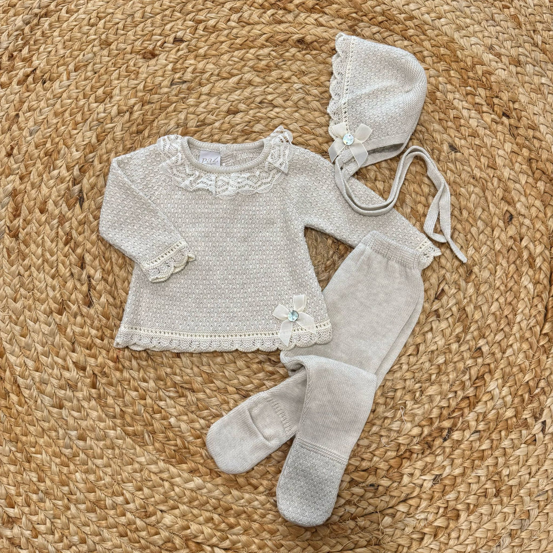 set nascita in filo composto damagliettina,coulotte ,cuffia e scarpinecodice: 9627