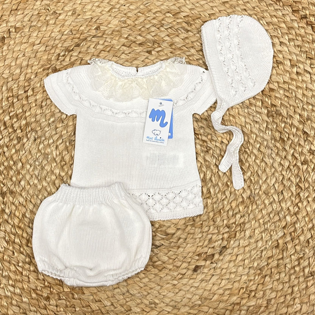 set nascita in filo composto damagliettina,coulotte e cuffiacodice: 9634RY