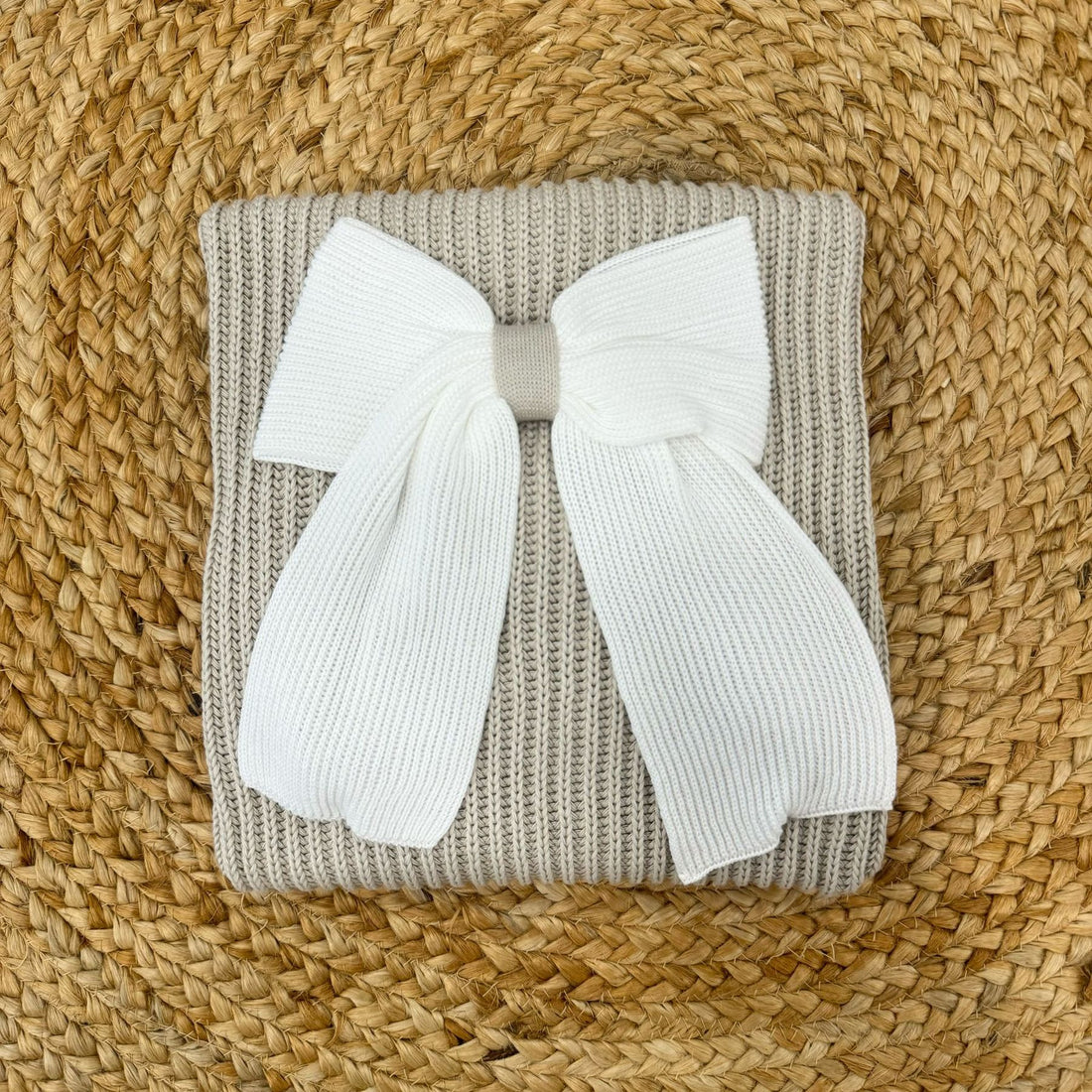 Maxi copertina in puro filo di cotone con lavorazione costa inglese e fiocco sul centro.