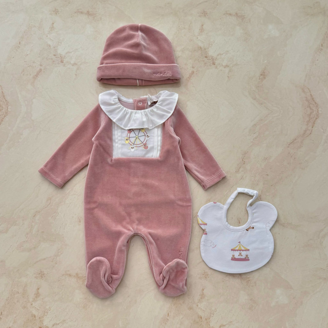 tutina in morbida ciniglia con cappellino e bavaglino in coordinatocodice: NAN66