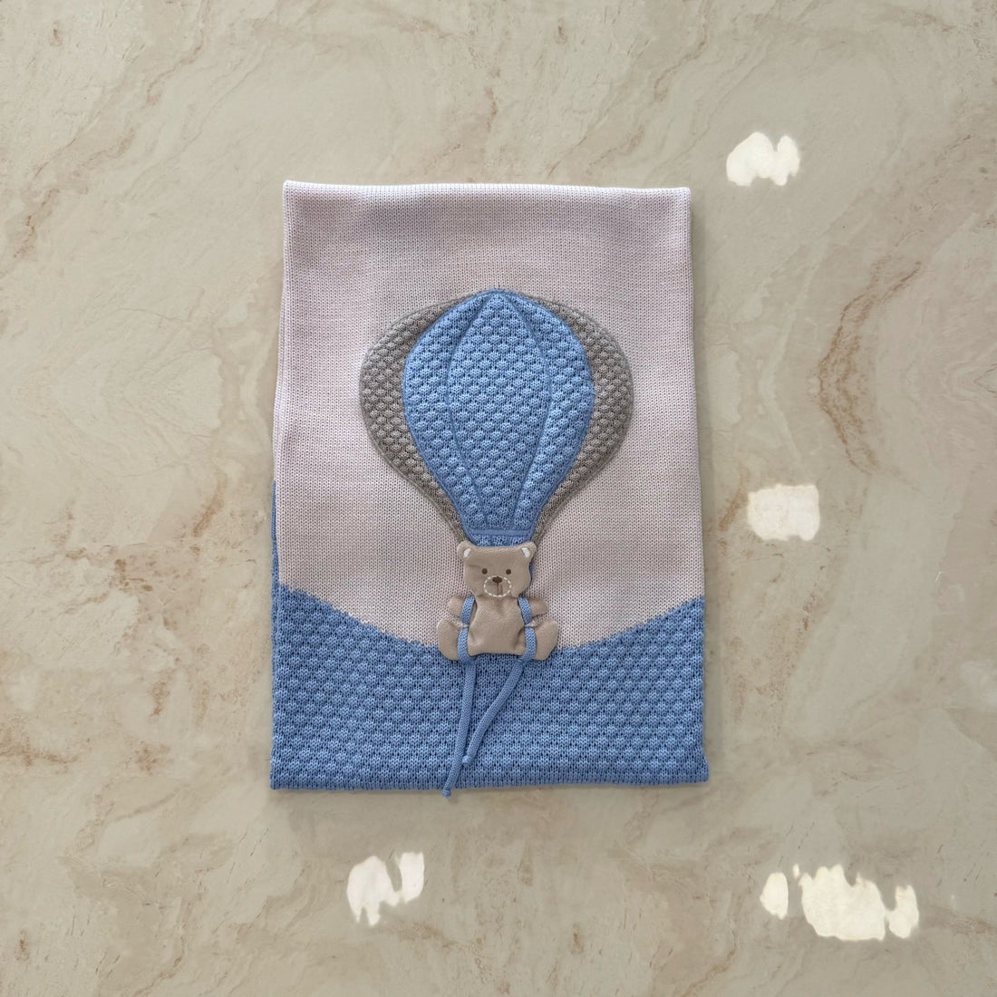 copertina in pura lana con mongolfiera e orsetto in velluto misure: 70x90cmcomposizione: 100% lanacodice: IN5780MADE...