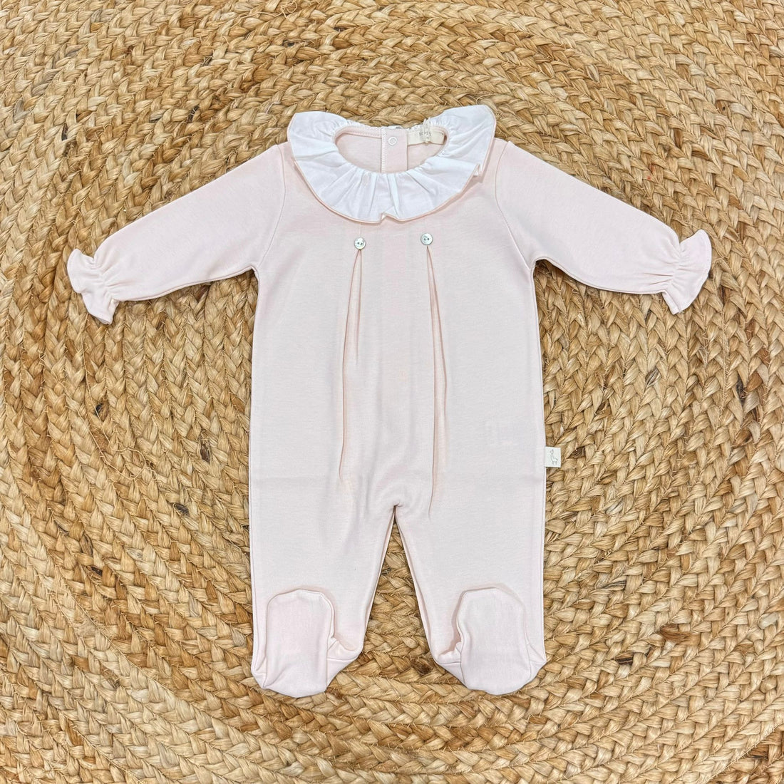 tutina in puro cotone con bottoncini madreperla e collo rouches