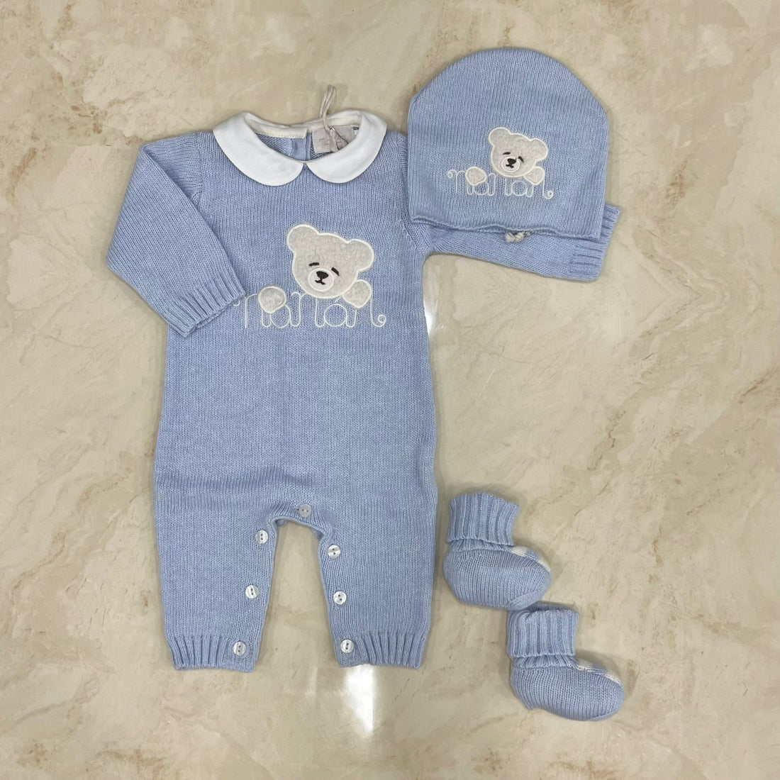 set nascita in misto lana composto da salopette e maglioncinocodice: 9858