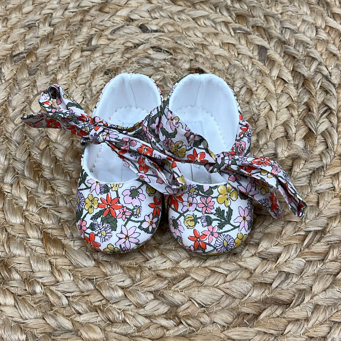 Glitter shoe with eyelets and removable satin bow anatomical footbed and non-slip sole