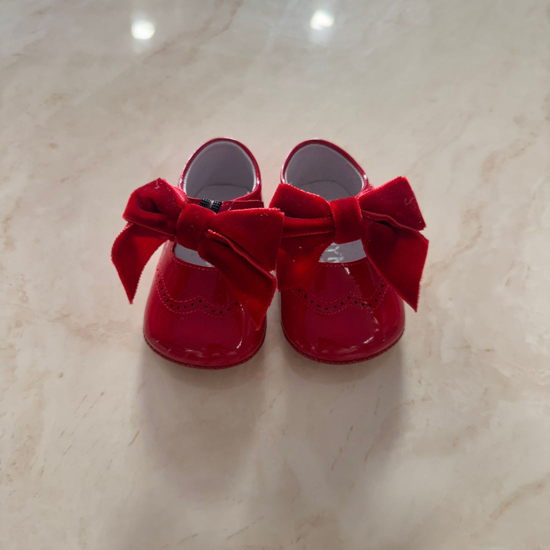scarpine da culla in vernice, interno in pelle e con fiocco removibile in vellutocodice: A3022