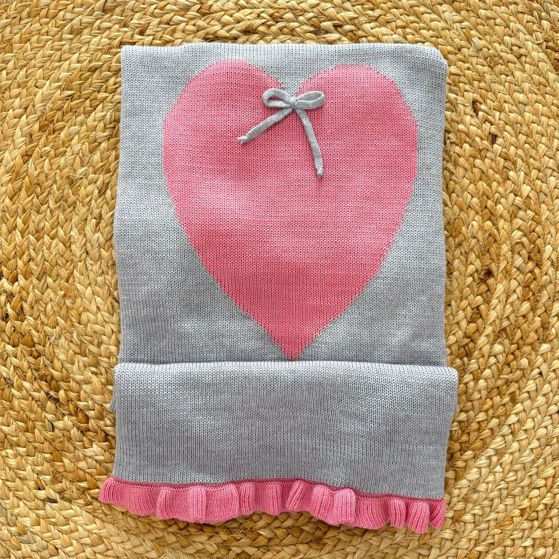 Copertina in purissima lana con cuore centrale e bordo rouches